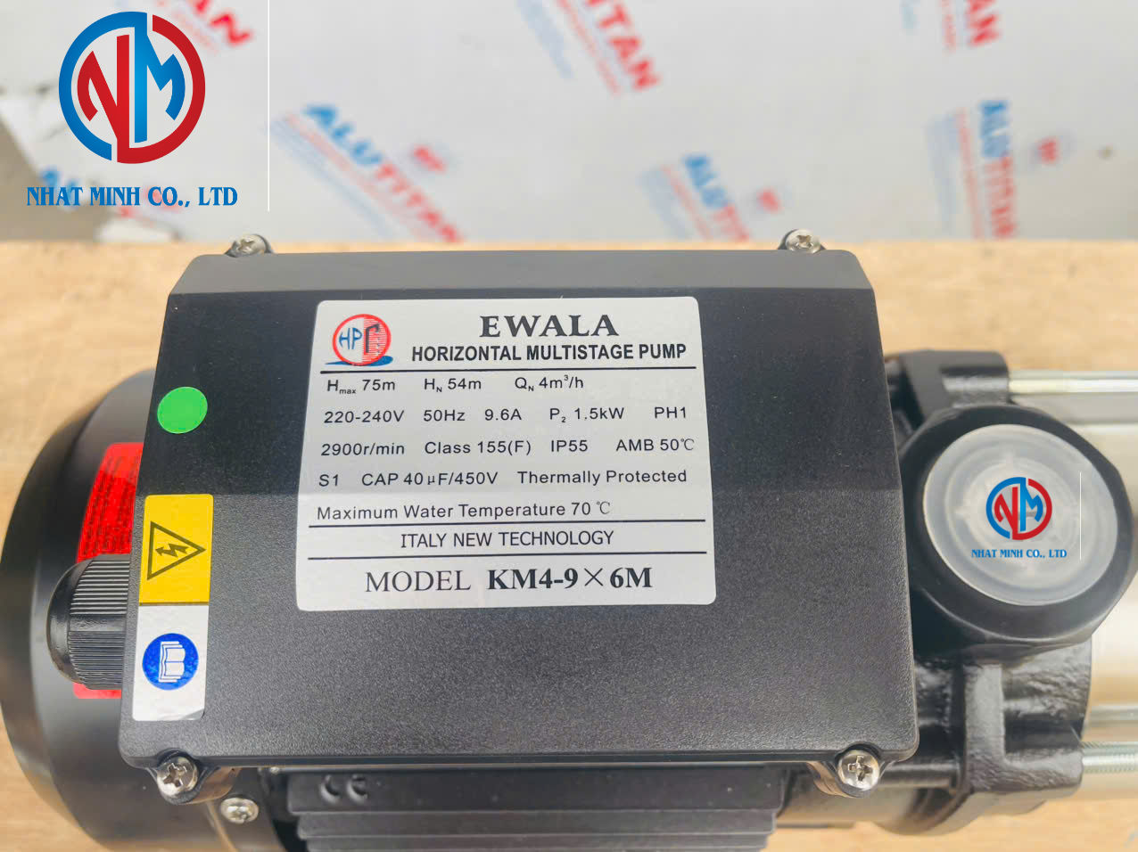 Máy bơm trục ngang đa tầng cánh EWALA KM4-9X6M là dòng máy bơm ly tâm đa tầng cánh, thường được dùng để bơm nước sạch cho các hệ thống cần áp lực cao.